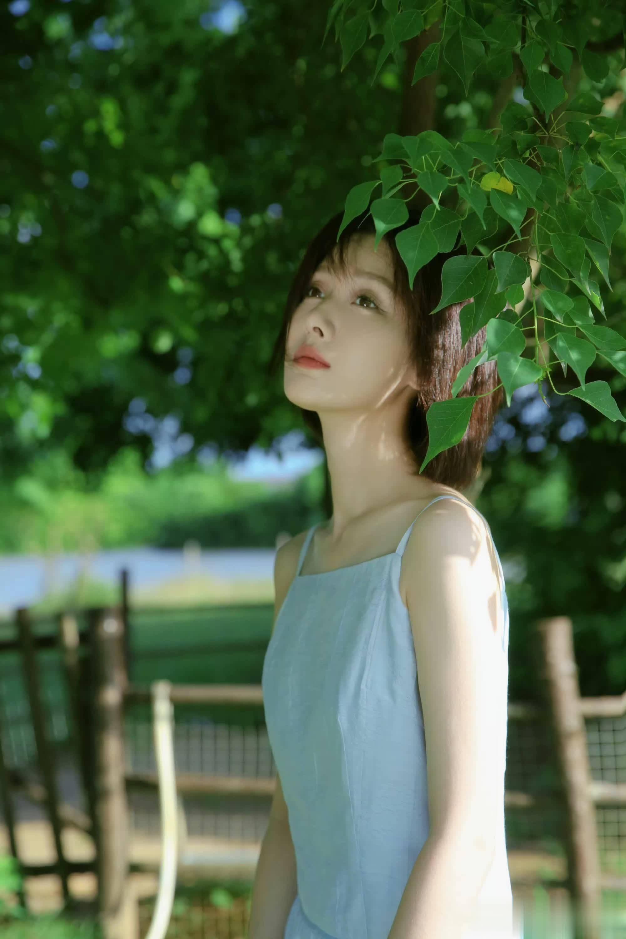 王子璇白裙造型在绿意间摇曳,一眼心动超浪漫!